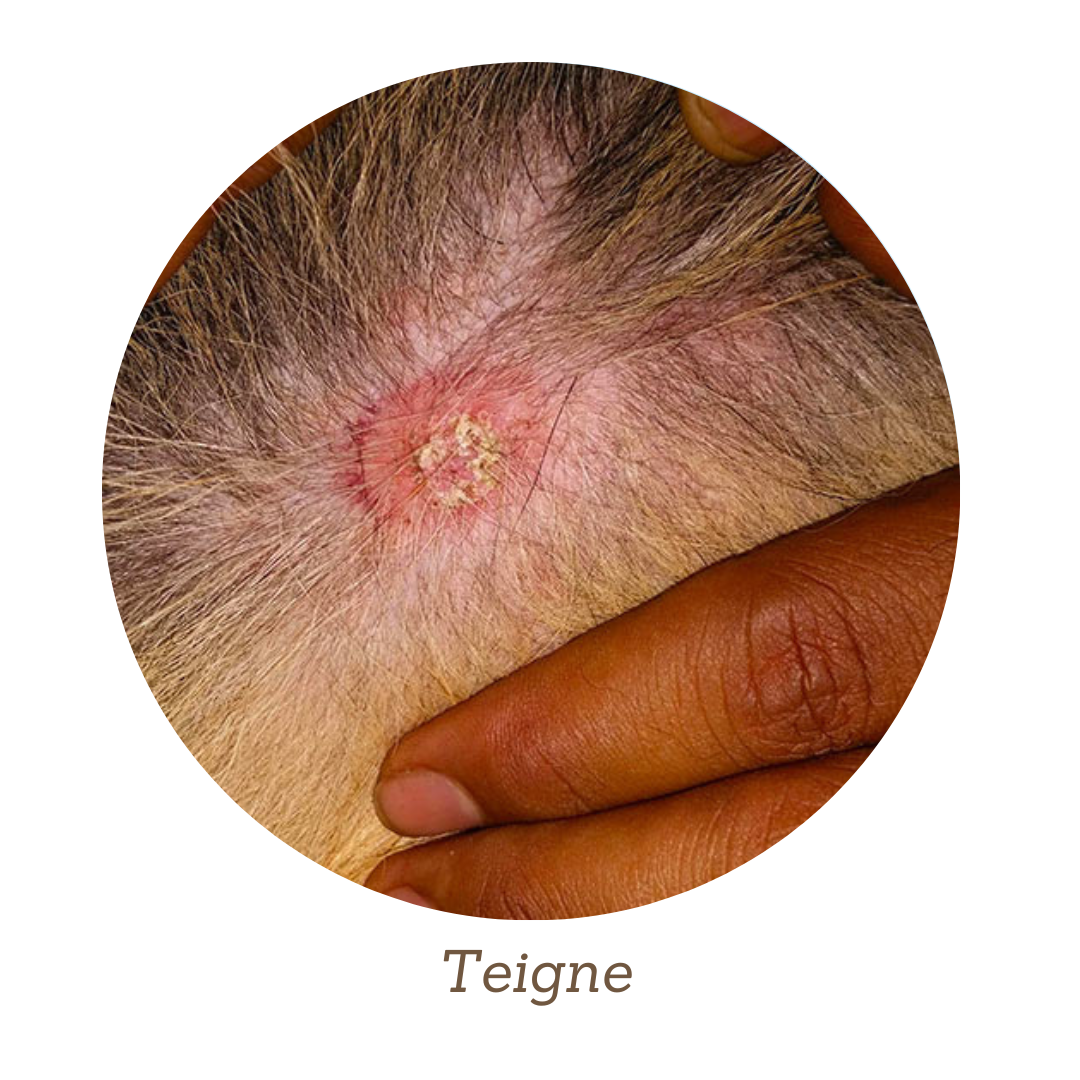 Très contagieuse, la teigne est engendrée par un champignon (dermatophyte) vivant dans les poils et les follicules pileux.