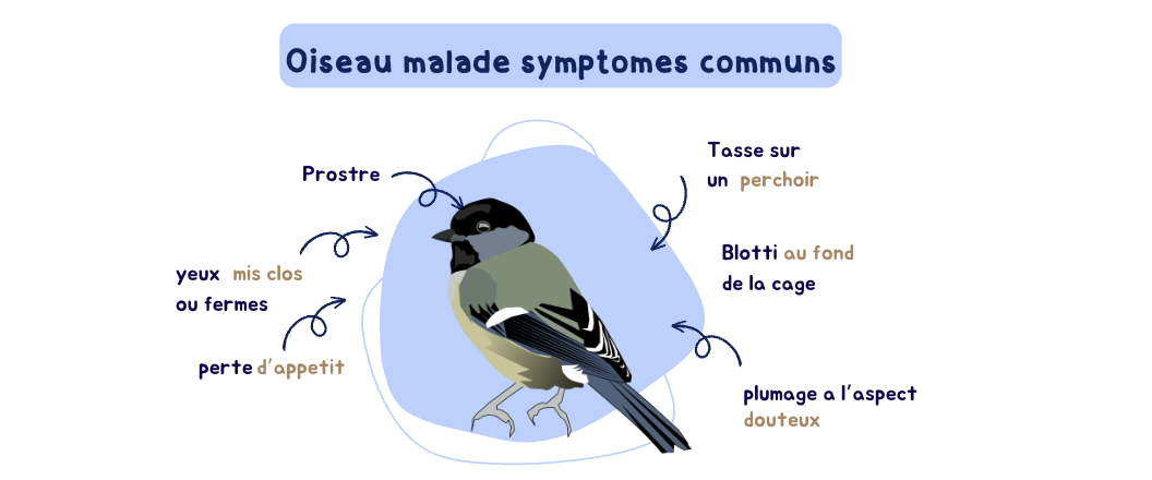 Si les symptômes varient en fonction de l'atteinte, en règle générale, un oiseau malade présente des caractéristiques spécifiques.