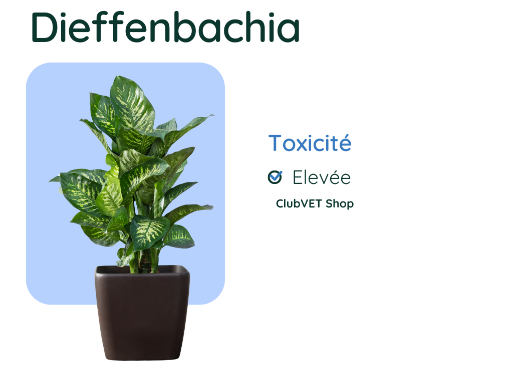 Le dieffenbachia est une plante d'intérieur très populaire, mais qui est très dangereuse pour nos amis les félins. Cette plante contient du latex composé de cristaux d'oxalate de calcium qui provoquent des irritations sévères.