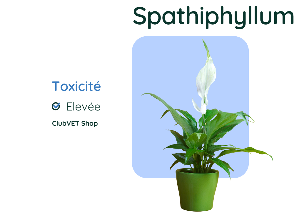 Le Spathiphyllum, aussi appelé "fleur de lune", contient également des cristaux d’oxalate de calcium. Sa sève peut provoquer des inflammations buccales, oculaires et digestives, et dans les cas les plus graves, entraîner des ulcères ou des perforations de l’estomac et de l’œsophage.